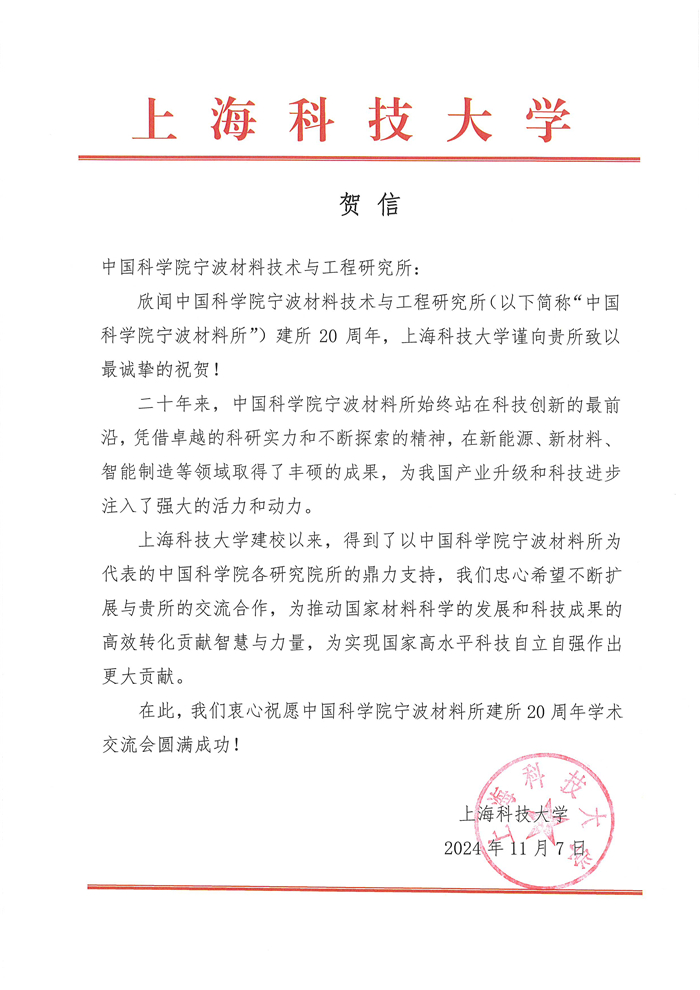 上海科技大学贺信