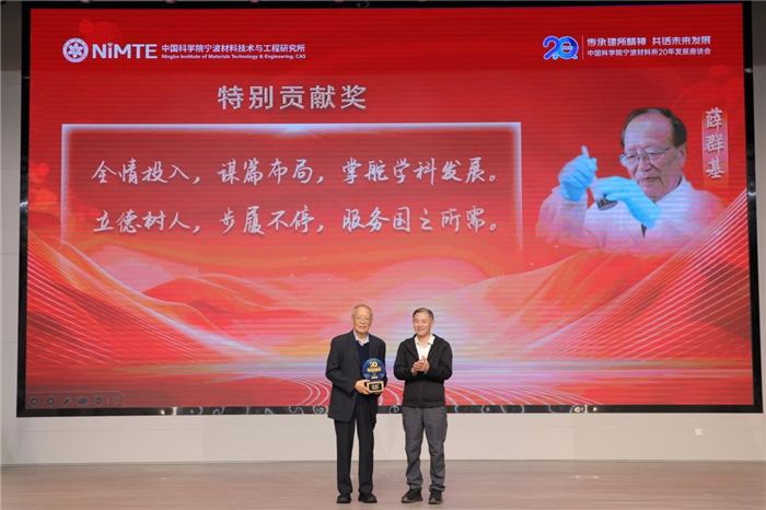 5630福彩网设立“特别贡献奖”以感谢为研究所的发展作出卓越贡献的前辈们。颁奖环节现场,李正华、徐岩分别为薛群基、余红艺、崔平、严庆颁发“特别贡献奖”。中国科学院原副院长施尔畏因故未能亲临现场,与会人员用热烈的掌声向他致以最崇高的敬意和最诚挚的感谢。