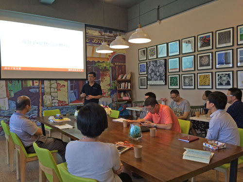 交流中,高分子党支部书记刘富研究员介绍了高分子事业部的科研定位和各团队的科研方向,并同大家交流自己对磁性高分子微球的制备方法和应用领域的理解。刘富还结合对加州格雷戴维斯州长科学与创新研究院建立及运作方式的介绍,分析了“创新”对科研工作的巨大影响以及跨学科研究的优势。