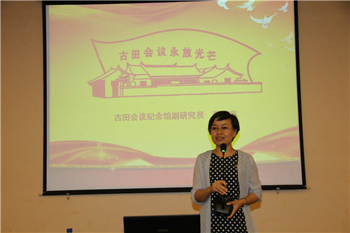 古田会议纪念馆游宝富副研究员作了题为《古田会议永放光芒》的专题培训报告。他从新老两个“古田会议”的历史地位、现实意义等方面,介绍了古田会议召开的历史背景、准备过程和主要内容,阐释了古田会议确立了“思想建党、政治建军”原则的重大历史意义,分析了2014年10月30日在古田召开的新世纪第一次全军政治工作会议(新古田会议)的特点。古田是全国唯一的,在解放前后都发生过重大事件的革命圣地。学员们还瞻仰了主席园,参观了古田会议旧址和古田会议纪念馆,大家对古田会议召开的时代背景、会议决议的历史作用有了更进一步的了解。在古田期间,学员们还参观了华润希望小镇,了解新农村建设的新景象,新成就。