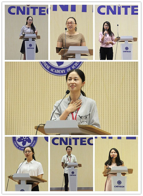 “胸怀理想,坚定信念”、“种一颗信念的种子”、“信仰之路、坚定脚步”、“不忘初心,梦起甬江,做时代的弄潮儿、“坚定信念,服务科研事业”……演讲者们有的来自科研一线,有的来自服务支撑部门,有普通党员,也有支部委员,有学生,有新入所的员工,也有已经在科研工作上取得一些成绩的副研究员。他们通过配乐演讲、诗歌朗诵等丰富多彩的形式,用朴实真挚的语言,饱含深情地分享了身边的故事和自己的感悟。