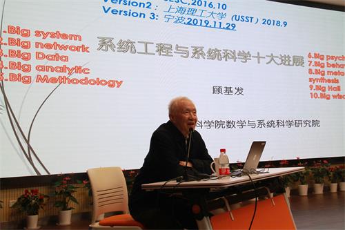 顾基发的报告着重描述系统工程和系统科学新进展的“十个大”:大系统,大网络,大数据,大解析,大方法论,大综合,大研讨厅,大心理,大行为,大智慧。报告中多次引用华罗庚、钱学森等老一辈科学家的事迹和观点,深入浅出地指出要践行和弘扬好他们胸怀天下的爱国精神,敢为人先的创新精神。同时,顾基发强调科研工作也要密切联系群众、好的技术要有好的思想以及道德来制约才能发挥好的作用。