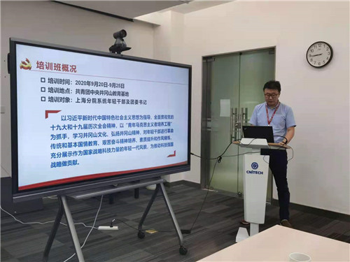 先进制造第二党支部书记吴晓飞介绍了参加中科院上海分院系统年轻干部及团委书记培训班的学习情况,并从为什么学、学什么、怎么学等角度分享了自己的学习体会。