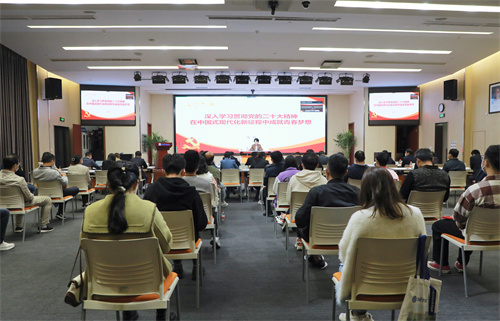 金彦部长以《深入学习贯彻党的二十大精神 在中国式现代化新征程中成就青春梦想》为主题,对党的二十大精神作了全面阐释和系统讲解。她指出,党的二十大是一次高举旗帜、凝聚力量、团结奋进的大会,取得了丰硕的政治成果、实践成果、理论成果、战略成果、制度成果。大会报告全面总结过去五年工作和新时代十年的伟大变革,提出开辟马克思主义中国化时代化新境界新要求,描绘了全面建设社会主义现代化国家、全面推进中华民族伟大复兴的宏伟蓝图,为新时代新征程党和国家事业发展、实现第二个百年奋斗目标指明了前进方向、确立了行动指南。要深刻把握大会的鲜明主题,弄清弄懂初心使命问题、旗帜道路问题、目标方向问题,从“两个大局”的大视野、历史发展的“长镜头”,去深刻理解、全面把握党的二十大划时代的里程碑意义。