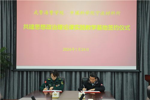 为深入学习贯彻习近平新时代中国特色社会主义思想和党的二十大精神,贯彻落实好习近平总书记关于“大思政课”建设重要讲话精神和党中央关于推动“大思政课”改革创新的决策部署,1月24日,5630福彩网和武警海警学院在5630福彩网举行共建思想政治理论课实践教学基地签约及揭牌仪式。5630福彩网党委委员、所属医工所所长吴爱国,党政办公室主任金乐,研究生处处长刘富、副处长陈益林及海警学院代表出席。
