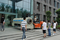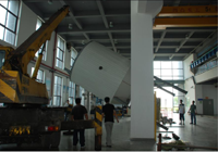 建刚负责建设磷酸铁锂中试线,则一帆风顺,一切按照我们的计划进行。大概在7月底,喷雾干燥塔、气氛回转炉以及其它各关键设备均已完成安装和调试。喷雾干燥塔和气氛回转炉的安装过程是最令我们激动和感动的。这两个庞然大物,一个高达8米,一个长达6米,喷雾干燥塔超出了楼层高度,而回转炉超出了楼道进门的转弯能力,如何把它们按原来设想安放在预定的位置,这的确大大地难住了我们这群年轻人。然而,事在人为,我们相信没有什么困难能难住我们。我们找来了大型吊车,可是由于吊车太大了,进了D1大厅都无法转身,也无法舒畅地升臂,好在司机耍出了乾坤大挪移的之术,机器臂直指二层天花,几乎接近完美!恰似大话西游中的一段经典场景:当时那把剑离我的喉咙只有0.01公分,但是四分之一炷香之后,那把剑的女主人将会…。我看见,当时那只巨臂离天花板只有0.01公分,但是四分之一炷香之后,那只巨臂将会彻底地把喷雾干燥塔吊到预定位置的上空…。当巨塔落地瞬间,大厅地响起了热烈的掌声和欢呼声!回转炉的安装也费了我们无数心细。一开始,大家幻想从楼道扭身进入实验室,然而扭了十余次也徒劳。它的身材实在是庞大了!知难而退,大伙又如蚂蚁一般合心协力把这个大家伙推出去了。建刚当即开始联系一台叉车,同时联系毛一鸣师傅,决定把窗户拆了,从窗口爬进去。大伙开始七手八脚起来了:挪路灯,搬钢板,卸玻璃,锯窗户(拆窗户是毛一鸣师傅操刀,我们感谢他),垫矿木,上叉车,扎绑带,起叉车。回转炉修长的身体在颤抖着,它疼吗?同来的厂方安装工程师已经惊出冷汗,因为整体设计的钢铁炉膛万一发生弯曲,整个设备可能要报废。叉车缓慢逼近窗台,室内手动叉车也慢慢逼近窗台,慢慢的,慢慢的,终于在快要贴近窗台的时候,室内叉车接住了炉子的另一端,接下来,整个炉子逐步被拽如室内。经过3个小时的努力,这个巨型炉子就这样被服帖地放入了狭小的实验室,犹如一头不听话的大象被赶进了饲养室。