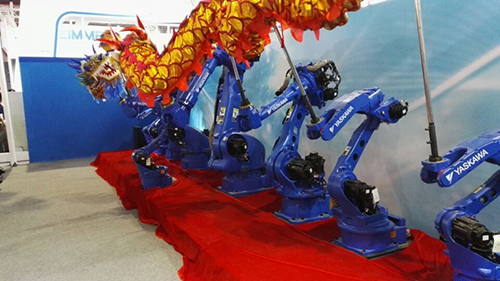 图 2 安川YASKAWA多机器人协同舞龙表演
