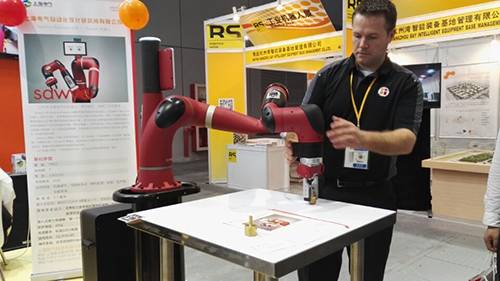 上海电气集团下属自动化设计研究所有限公司联手美国Rethink Robotics机器人首次登陆中国市场,我认为是今年工博会一大亮点。其所展出的机器人是著名的sawyer人机互动机器人,其设计者早在去年曾在TED就该机器人专门做了演讲,其优越的人机互动性能,友好的人机界面以及便捷的示教编程特性,使其首次亮相就一举成名。更为重要的是该款机器人基本代表了下一代工业机器人的发展潮流,即人机友好互动,快速示教编程,多机器人协作等特点。