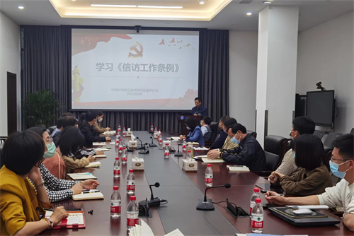 会议传达学习了中国科学院办公厅《关于学习宣传贯彻落实<信访工作条例>的通知》精神,明确了学习贯彻《条例》的重要意义、深刻理解和全面把握《条例》主要内容、加强宣传教育等具体要求。