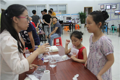 本次活动共有8个各具特色的实验,其中海上除油污实验、3D打印机、全向移动机器人等项目是活动的“保留节目”,这些实验在去年就颇受欢迎,今年依旧抓住了居民们的好奇心,有一些小朋友甚至因为去年没看够,今年还要继续参与进来。