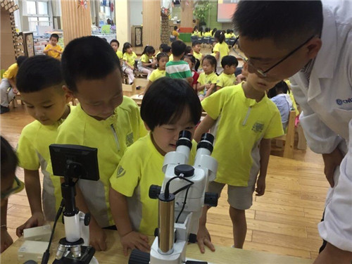 本次活动由测试中心高级工程师陈国新担任主讲。针对幼儿园小朋友的年龄及兴趣特点,他结合自己擅长的显微镜仪器作了题为“奇妙的显微镜世界”的报告,以此来引发幼儿们小朋友们对微观世界的兴趣。他结合自己的工作,向小朋友们展示了一个自己每天所看到的“小世界”,但却同样也充满精彩的“大世界”,激发了孩子们学科学的热情。