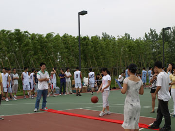 本次比赛以部门为单位共组建六支篮球队,经过17场紧张激烈的循环赛和淘汰赛,纳米队和高分子&特纤队以绝对优势脱颖而出取得决赛权。下午17时整,期盼已久的篮球决赛即将上演,今日的篮球场显得热闹非凡,比赛还未开始,场外观众陆续而来,自成一道围栏,双方球队的拉拉队各守一方,学生会的工作人员也早已准备就绪。在口哨吹响的一霎那,赛场顿时活跃起来,球员们灵敏矫健的身影,炙手可热的篮球,时刻牵引着观众的视点,随着漂亮的进球,成功的防守,快速的带球,观众呼声此起彼伏,全场上下融为一体,球赛将全所人的心都汇聚在这里,洋溢着激情与友情。