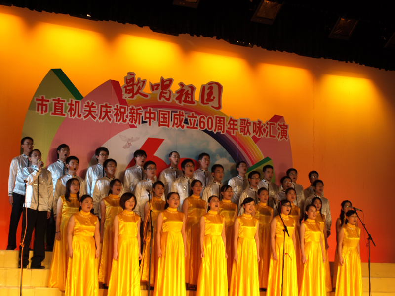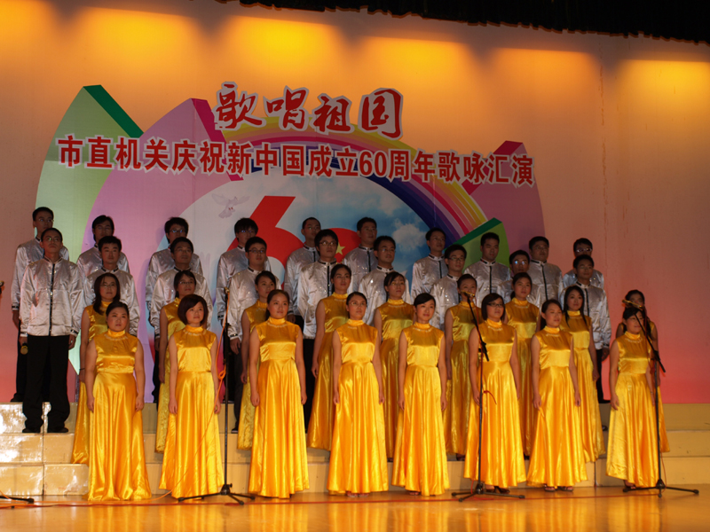 2009年9月15日,为庆祝新中国成立60周年,用我们的歌声唱响祝福伟大祖国的时代主旋律,进一步激发广大员工师生的爱国热情,振奋精神,凝聚力量,继续奋进,为祖国的科技事业做出更多更大的贡献,我所合唱团带着《共和国之恋》参加了在宁波市青少年宫“春之声”剧场举行的由中共宁波市直属机关工作委员会主办,宁波市直属机关工会、宁波市青少年宫和宁波电视台《看看看》栏目承办的“歌唱祖国”市直机关庆祝新中国成立60周年歌咏汇演。