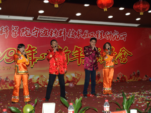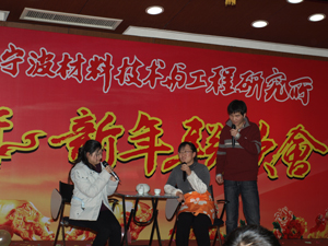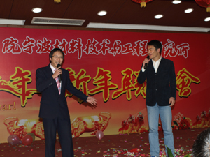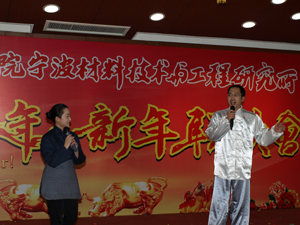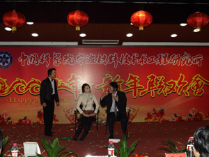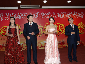 E楼报告厅张灯结彩,春意盎然,洋溢着浓浓的过年气氛,联欢会在礼花飞舞和主持人富有激情的祝福词中拉开了序幕。应主持人的邀请,崔平所长首先发表了热情洋溢的新年献辞。崔所长对应邀参加联欢会的各位嘉宾表示热烈的欢迎,并代表所领导班子向辛勤工作、积极进取的全体员工、学生,向长期关心和支持材料所建设的各级领导、社会各界人士,表示衷心的感谢,向全体员工师生及家人致以节日的问候和新春的祝福!崔所长简要地总结了一年来,全所在科研、支撑、管理和后勤管理等方面取得的可喜进展,勉励大家在新的一年里团结一致,同心协力,为材料所更为辉煌的明天而努力奋斗。