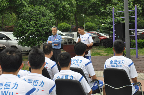 中科院宁波材料工会主席刘兆平、中电43所合肥恒力总经理徐金龙及其他领导、足协成员参加了友谊赛前的交流会,中科院宁波材料工会文体委员张文武主持交流会。会上,刘兆平主席强调了足球的魅力所在,希望大家不仅要将足球踢得好,更要将工作做好。
