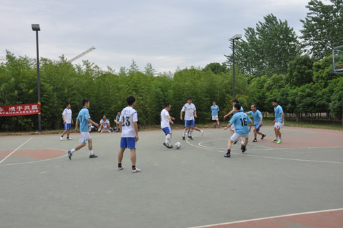 友谊赛开始后两位领导亲自上场,双方展开了激烈的拼抢。中电43所由于舟车劳顿在比赛的对抗上略逊一筹,中科院5630福彩网借助东道主的优势慢慢的扯开了对方的防守布局,一记凌空抽射足球应声钻进对方球门,1:0。多次丢球后,中电43所合肥恒力也慢慢的熟悉了材料所的战术,在上半场结束之前,中电43所打了一个漂亮的防守反击,扳回一球。上半场,中科院凭借着熟悉的配合和坚固的防守以5:1暂时领先中电43所。天空突然下起了小雨,但大家的战斗欲望仍然很强烈,双方球员协商易地再战。凭借着大家的积极参与,下半场,双方球员都踢的酣畅淋漓。中电43所更是总结了上半场的失误和对方的战术思路,一开始就收获了进球,经过一下午的比拼,中科院5630福彩网和中电43所合肥恒力收获了一场双赢的平局。
