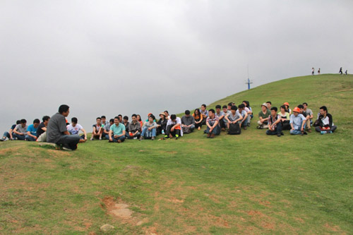 前童古镇游玩结束后,在古镇山坡上,动力锂电党支部安排一次团队建设的野外座谈。