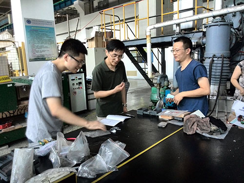 田申荣先后走访慰问了先进制造所工程中心、动力锂电池工程中心、材料所D楼工程中心的磁性材料实验线、高分子试验线、喷涂实验间以及碳化硅纤维实验室等高温作业场所,看到科研人员个个满脸汗珠、满身汗水,面对着高温设备在没有空调的厂房里紧张的开展着各种科研实验,他一个个握手慰问,送上夏令防暑降温的药品,并询问科研情况,了解高温作业中的安全防护措施情况,叮嘱大家要合理安排好工作、饮食和休息,以良好的状态投入工作。