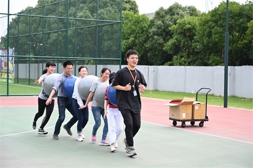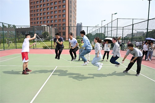本次运动会设置了快乐同心球、6人7足、珠行万里、3分钟集体跳长绳等4个集体项目,每个项目都是既考验速度,又考验团队配合。