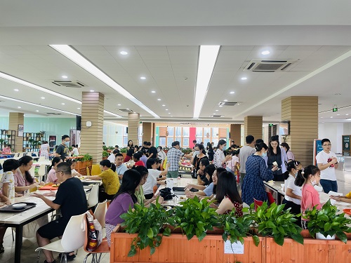 大家有带小孩来的,也有与朋友、同学一起来参加的,大家互相交流包月饼的技巧,现场一片欢乐温馨的气氛。此次活动为员工、学生及其家人提供了一个协作互动的机会,有利于增强家庭幸福感;同时,也给在这个节假日没有机会回家的员工、学生送上了材料所的一份心意,让大家在异乡依然能感受到家的温暖。