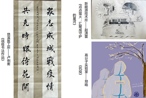 三等奖:新能源-赵潇蕾-《点点萤火,汇聚成守护的星河》、医工所-卢俐衡-《战疫书法作品》、高分子实验室-郑皓-《抗疫》