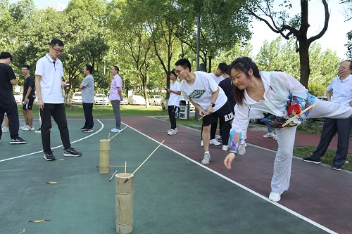 迎着炎炎烈日,平时各自埋头在实验室的职工短暂地停下了手头的工作,一起来到运动场让身体“燃”起来,尽情享受挥洒汗水的快乐。本次运动会包括3个比赛项目:一分钟跳绳、投壶和定点投篮。