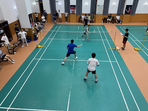 2022年7月20日下午18点30分,参赛队员及观众齐聚羽毛球馆,羽毛球协会会长汪龙宣布比赛正式开始。当天现场气氛火热,场上选手你来我往,斗智斗勇,敢打敢拼,高远球,平抽挡,扑杀吊,展示了高超的羽毛球技术。每位参赛选手都发挥着顽强拼搏的体育精神,即使落后,仍然每球必争,绝不轻易放弃;而不时出现的精妙绝伦的回球,更为比赛增色不少。同时场下队友摇旗助威,加油呐喊,亦是不甘示弱,不时有人出谋划策或是及时递上毛巾水杯。每一次比赛结束后本着“友谊第一、比赛第二”的原则,双方都会友好握手,互表敬意,展现了材料学子高尚的道德品质。