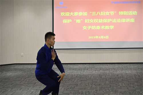 随后,前湾新区杭州湾消防救援站战斗员韩俊杰针对现场观众进行了女子防身术教学,为大家演示了一套防护拳法,并进行了踩脚加二起脚、踢腿组合、长护心意门等十余种招式的现场教学。在轻松愉悦的氛围中,大家收获满满。