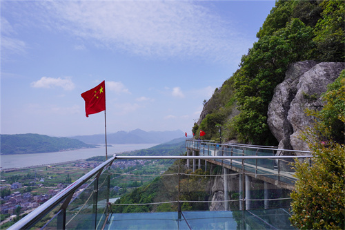 在蓝天白云的映衬下,象山茅洋玻璃栈道宛如一颗璀璨的明珠镶嵌在翠绿的山林之中;透明的栈道在阳光下闪烁着诱人的光泽,吸引大家踏上了这场奇妙的征程。走在玻璃栈道上,仿佛置身于云端,让大家感受到了大自然的壮丽恢弘与人类的智慧结晶。随着每一步的前行,山谷与绿树都在视野中展现得如诗如画。在玻璃栈道上,大家不仅可以欣赏到壮丽的山水景色,还可以感受到脚下透明玻璃所带来的惊险与刺激。