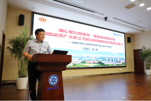 张驰代表第三届工会委员会作了题为《凝心聚力担使命,砥砺奋进新征程,团结动员广大职工为抢占科技制高点而努力奋斗》的工作报告。郑文革代表第三届工会经费审查委员会,围绕本届工会经费收支审查情况、本届工会经审工作向大会作了工作报告。陈亮代表第二届科协作了题为《坚守初心使命、凝聚科技力量,团结广大科技工作者,为建设新型科研机构努力奋斗》的工作报告。