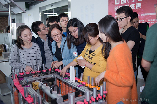 团员们首先观看了位于展览大厅的宣传介绍片,参观了中科院创客空间。该创客空间成立于2013年,是依托宁波中国科学院信息技术应用研究院而成立的专门为创客提供创业服务的公共创新平台,现已有会员1500余名,创客项目100余项,成功孵化创客企业14个。大家依次参观了“森林空气杯”、“橙伞”、“无轴电动车”等创客项目,以及中科物联网家具云平台。此次参观激起不少团员的兴趣,部分团员青年还萌发了参加他们所承办的“第二届中国创客创新创业大赛”的念头。