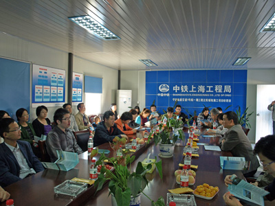 在中铁隧道集团有限公司会议室,宁波轨道交通工程建设指挥部机关党总支书记欧阳水平详细介绍了宁波轨道交通项目的线网和近期的规划、1号线和2号线一期工程的规划,以及轨道交通建设在宁波实施过程中主要存在的困难、宁波地质特点和主要采取的施工方法、施工中的噪声和尘土控制等。同时观看了宁波轨道交通建设宣传片,较为全面地了解了城市轨道交通的定义、特点,宁波未来轨道交通运营前瞻等。