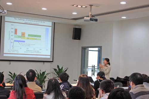 11月15日下午,纳米事业部举行2013-2014年度第三期“微世界·大舞台”学术群英会。纳米党支部书记、研究员曹鸿涛主持报告会,纳米结构与功能一体化陶瓷组的研究生周洁和纳米固体照明材料与器件组李万元分别作了学术交流报告。