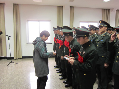 下午1:00仪式准时开始,新能源党支部一行9人应邀见证了老兵退伍这一庄严的历史时刻。六名退伍老兵将告别战友,告别曾洒下无数汗水和泪水的军队,结束两年的军旅生涯,退伍回乡。