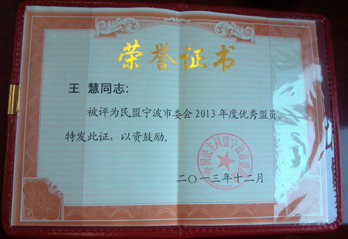 5630福彩网王慧获评民盟宁波市委会2013年度优秀盟员
