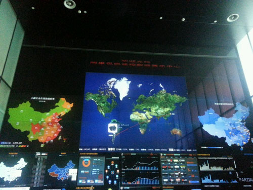 作为中国最大的网络公司和世界第二大网络公司,阿里巴巴是由马云在1999年一手创立企业对企业的网上贸易市场平台现有12家旗下公司,分别是:阿里巴巴B2B、淘宝网、天猫、支付宝、口碑网、阿里云、中国雅虎、一淘网、中国万网、聚划算、CNZZ、一达通。我们主要参观了阿里巴巴的监控数据展示中心,大屏幕显示了阿里巴巴所有业务的现状和即时信息,包括三大业务平台——淘宝网的零售、阿里巴巴的内贸和阿里巴巴的外贸,两大中间支撑层——支付宝和阿里金融,一个底层支持——阿里云计算。总裁办公室李丹经理向我们介绍了大屏幕上各个版块背后的信息,如阿里巴巴B2B平台有240多个国家超过3千万的注册用户,海量的交易数据可以让阿里巴巴数据挖掘分析出中小企业出口趋势和全球中小企业贸易活跃程度,比国家海关得到的数据快了3—6个月,因此阿里巴巴也负责向国家统计局提供预测报告。在2012年的双十一,淘宝创下了日交易额191亿元的记录,淘宝2012年交易额达到1万亿,大家在屏幕上看到淘宝的实时交易额和对应的地区活跃程度。