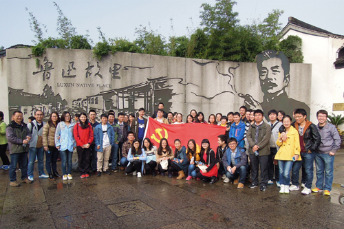 位于浙江省绍兴市的鲁迅故里,原为鲁迅家早年的住处,由鲁迅故居、鲁迅祖居、百草园、三味书屋、鲁迅生平事迹陈列厅等组成。一进入景区,大家就被墙上的“民族脊梁”四个大字所震撼。在三味书屋,大家看到了鲁迅当年刻在书桌上的那枚“早”字,感受到他在艰苦条件下刻苦学习的决心和毅力。在鲁迅故居和百草园,大家仿佛置身于鲁迅先生所写的文章之中,不禁回忆起文中的一幕幕情景,感同身受,更深切地体会了鲁迅当年的思想成长历程。在鲁迅生平事迹陈列厅,瞻仰着一件件实物、一张张照片、一份份手稿、一扎扎书信,党员团员们看到了鲁迅先生一生的光辉业绩,充分领略到他为国家、为民族鞠躬尽瘁、死而后已的奉献精神,顿生无限感慨和思考,对陈列厅门口所镌刻的“横眉冷对千夫指,俯首甘为孺子牛”也有了更为深刻的理解。
