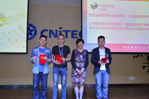 微信墙上崔平所长的一句留言令现场观众为之振奋——“园区因有歌声而富有生机,人生因有歌声而快乐;材料所因有你们而灿烂;祖国因有你们更辉煌!祝同学们在未来的人生大舞台上创造更多的精彩!”