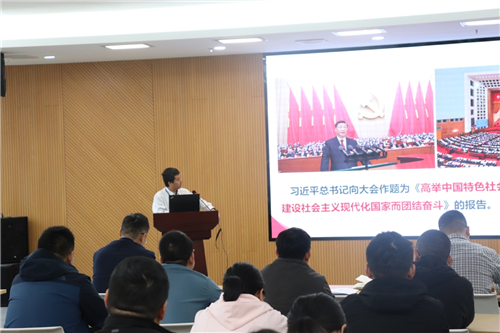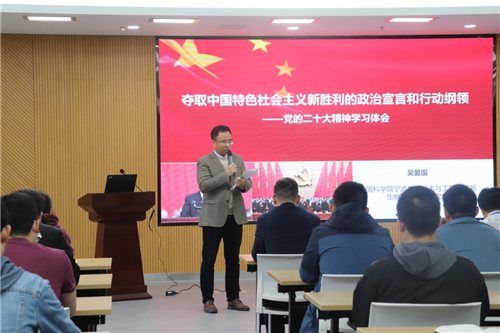首先,研究所党委委员、所属医工所所长吴爱国为党员们做了党的二十大精神学习报告。报告从党的二十大召开的历史背景与重大意义出发,深入介绍了二十大报告的主要内容,希望党员们能在学懂弄通做实二十大精神上下功夫,不断提升科研工作能力。在介绍国内外形势的部分,吴爱国摆事实、讲道理,提醒大家要有危机感,来自外部的压力不断升级,中美博弈愈演愈烈,面对美西方的围堵、遏制和打压,我们应理直气壮地同他们进行斗争。党员应该始终站在历史正确的一边,站在人类文明进步的一边。他还表示我们身为科研工作者,面对新时代的变革,要努力奋斗,勇于面对、积极应对新一轮科技革命的挑战。吴爱国的报告深入浅出,给党员们带来了深刻启迪。