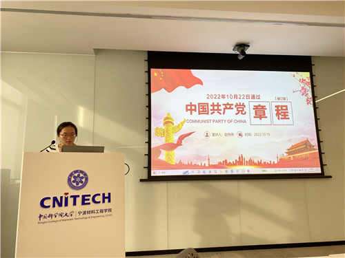 会上,支部宣传委员赵伟伟带领大家深入学习了党的二十大通过的《中国共产党章程(修正案)》。她先从党章的功能和定位出发强调了党章修改的重大意义,号召党员们要认真学习党章、严格遵守党章、坚决贯彻党章、自觉维护党章;随后,从总纲部分和条文部分领学了党章修改的重要内容,并对修订的背景进行了详细讲解,加深了党员同志们对新时代党的基本理论、基本路线和基本方略全面清晰的认识。