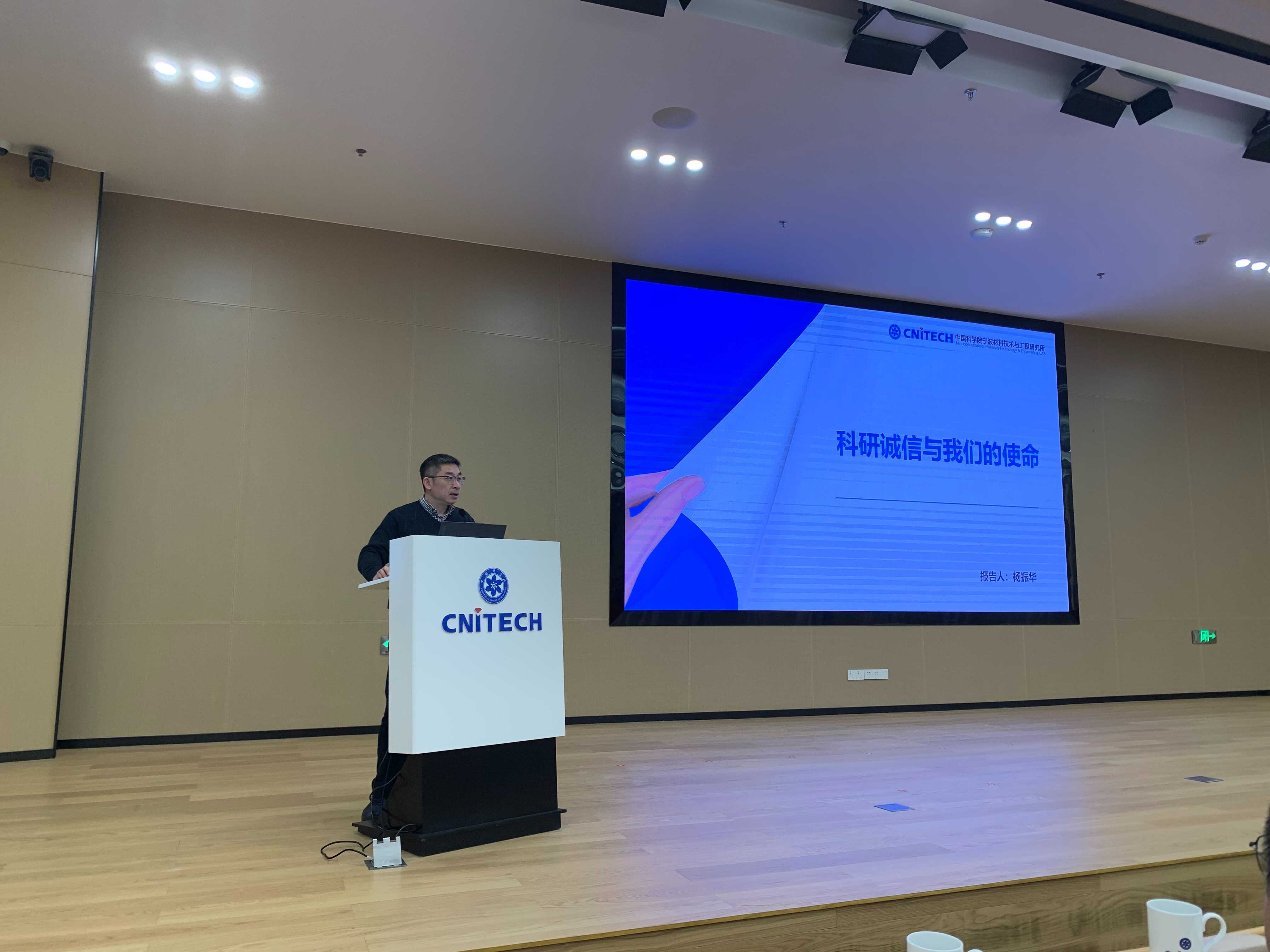 杨振华做了题为“科研诚信与我们的使命”的主题报告,从科研诚信文件解读、细说科研诚信提醒、常见科研失信行为、科研失信典型案例、抢占科技制高点五个方面对相关内容作了宣贯和解读。他要求大家必须要坚守科研诚信的底线,要与一切科研失信行为做斗争,共同营造风清气正的科研环境。他号召海洋实验室全体师生员工要深化思想认识,增强行动自觉,在新时代新征程,携手创新,把火热的青春奉献给科研事业,奉献给我们伟大的祖国!
