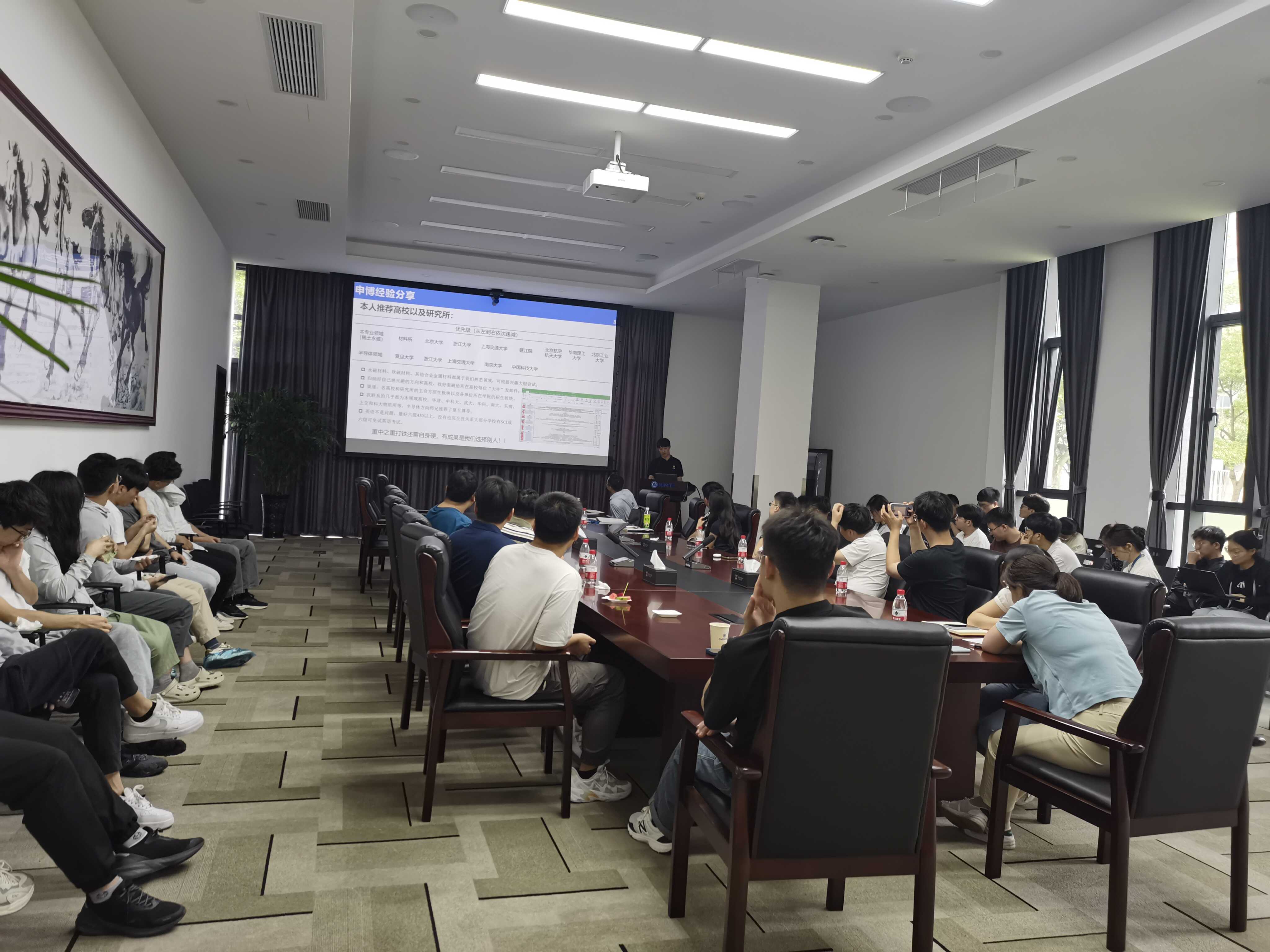 为推进落实研究所关于抢占科技制高点的重要部署和工作安排,提升职工和学生科技贡献战斗力,6月13日,稀土永磁材料联合创新中心党支部召开抢占科技制高点系列活动之“不忘初心、不负芳华”毕业生经验分享会。会议由支部副书记刘雷同志主持,在职员工和学生45人参加会议。