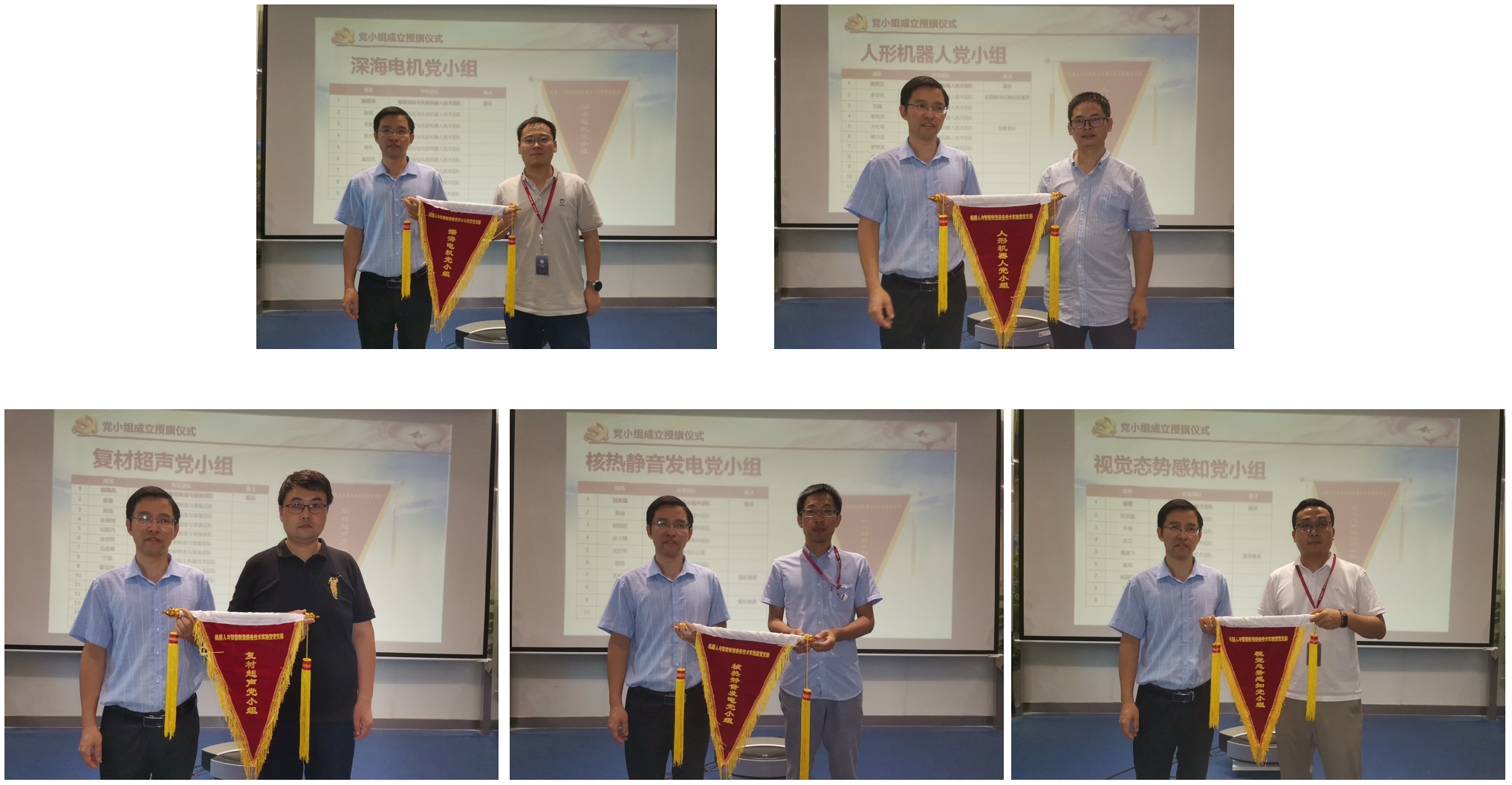 为进一步开展践行机器人党支部的特色活动—“把党小组建在科研项目上” ,会上,根据今年各团队承担国家重大任务的情况,党支部重新成立了5个党小组,并选出陈进华、郑天江、刘永福、徐海兵、徐刚6名有担当、经验丰富的党员担任组长,会上进行了党小组授旗仪式。