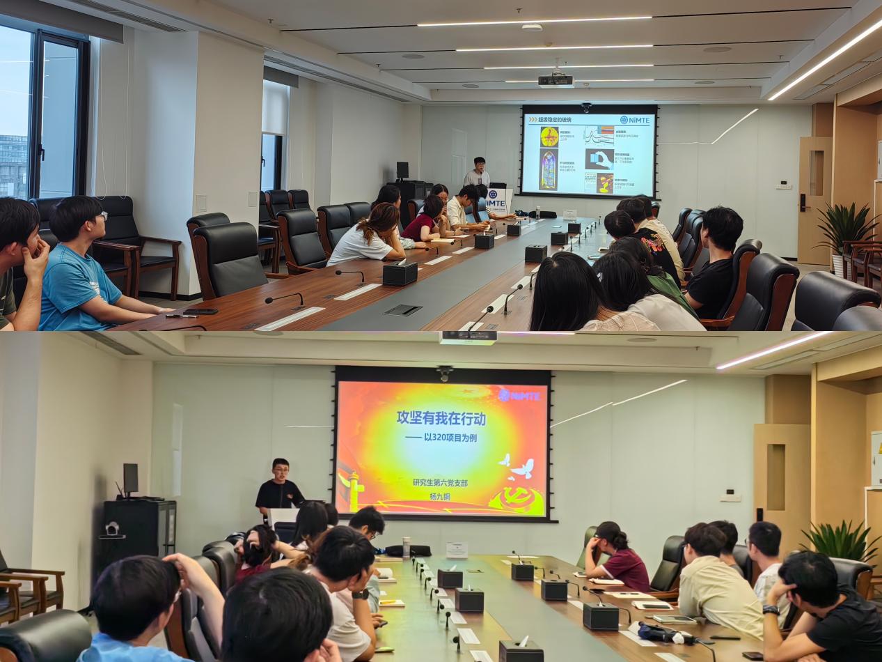 会上,党员代表陈霄和杨九铜分别以“如何在月球上获得水”和“攻坚有我在行动”为题,结合各自科研工作作专题党课报告。陈霄以“为什么研究月壤?”、“月球是否有水?”、“如何获得水?”等章节详细介绍自己的科研工作,并就相关问题与参会人员开展交流研讨。杨九铜讲述自身所在课题组围绕“研制国际先进低噪声无轴轮缘推进系统”建立科技攻关团队,详细介绍团队攻关举措,并向与会人员分享攻关团队成员拼搏奉献、团结协作和敢于进取的攻关精神。