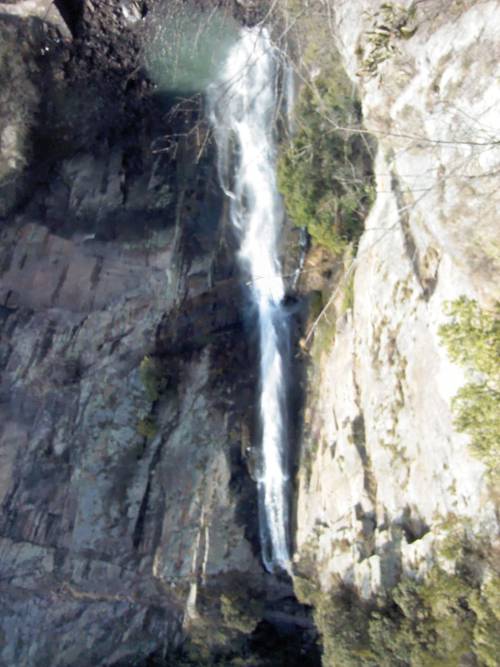 顺着游览路线,登着密林中的人造石台一步一步走,和同伴们聊着轻松有趣的话题,不知不觉便来到了山顶,只见一潭碧绿静静的倒映着的湖水,只见顺着水流忽然跳入眼睛远处青纱盖着的群山,只见两山之间水流冲出崖口如万马奔腾的声音,便来到了有名的千丈瀑布的,从顶端看下,湖水飞泄崖口,直下千丈,气势磅礴,如玉龙凌空翻滚,撞击悬崖中突出的巨石,顿时水花四溅,分外壮观,直叫人心虚腿软。既然从上面看惊险壮观,就更想知道从下面便是怎样?便顺着路线,从瀑布顶端踩着石台直奔山下,还未靠近,只觉水雾蒙蒙,如同下着的蒙蒙细雨,落在脸上清爽至极,好不欢快的跑到近前,沐这千丈瀑布带来的清爽,早就料想到这种情况下如是天晴,必有彩虹,果不其然。冲上前去,尽管让山顶一泻千丈的瀑布压向你,尽情让瀑布赐予的水雾亲吻你,冲入身躯的水声,环绕身边的彩虹,一切烦恼在瞬间烟消云散,只留你痴痴一人。千丈瀑布一景,使我觉得南方的山水不再仅仅只是水润清秀的女子,还可以是英俊秀气的男子,当然,这是不同于北方男子的粗狂豪爽,所谓一方水土养一方人。