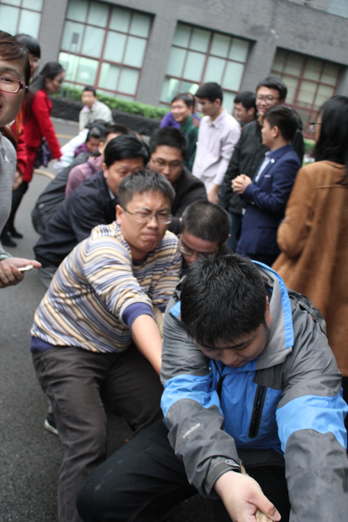 其次是目标一致、坚持到底的精神。纵观这次的预赛和决赛,我们不难发现好多队伍实力相当,比赛过程中僵持的情形也异常牵动人心。双方在僵持过程中拼得就是谁能坚持下来,盯紧目标,队不散、形不乱、气不松。一旦队乱了,可能瞬间就被对方拉过去了。别看拔河在短短的几分钟内就可以结束一局,但是对于每个队员来说,一口气憋着不能松,聚尽全身力气,拔一局下来,场上的人员都会有一点虚脱的感觉,手掌疼、胳膊酸,付出的力量可想而知。但是即使如此,在下一局开始之际,大家又是深吸一口气,不顾浑身的酸痛,坚持、再坚持,开始下一轮的拼搏。