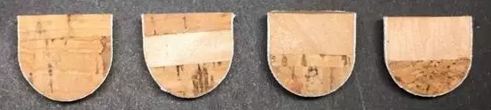 羽毛球主要由球头、毛片以及胶水构成。球头按材料成分主要分为全天然软木球头、三拼天然软木球头、台纤天然软木球头、台纤复合软木球头、发泡球头(图)。其中,天然软木成分越多,球头的弹性和耐用性更好,击球手感更为清脆扎实,出球速度更快。每个羽毛球都有16根羽毛固定在球托部,羽毛长64~70 mm,顶端围成圆形(直径58~68 mm),球托底部同为圆形(直径25~28 mm)。羽毛长度、间距应一致,毛色、粗细均匀,且插球角度一致。