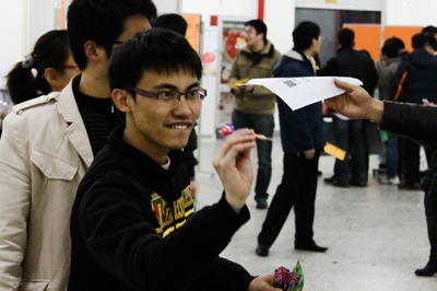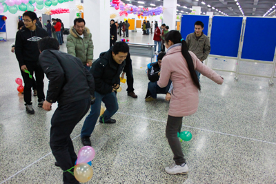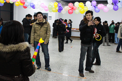 2009年12月30日傍晚,D4楼被装扮的焕然一新,充满了欢声笑语,洋溢着浓浓的节日气氛,两百多名员工、研究生及家属参加了此次游园会,与会人员在各个游戏场地一展身手,小李飞镖、投篮高手、贴鼻子、保龄球、踩气球、持乒乓球踢足球、筷子夹乒乓球、猜灯谜等诸多游戏受到了大家的喜爱,并通过游戏积分换取了组委会为参与者静心准备的礼品。