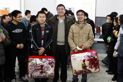 崔平所长、严庆书记、郑文革研究员到场观看游园活动,抽出了游园会的六名新年幸运大奖号码,并为获奖人员现场颁奖。