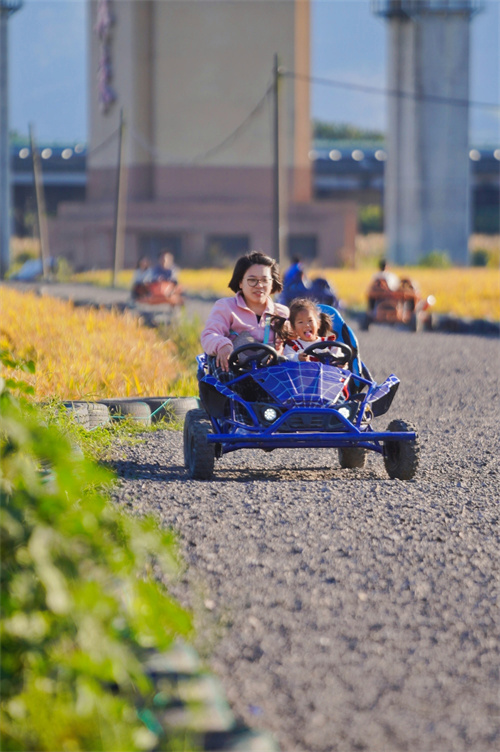 真人CS战场上队员们身着战术装备,躲在树林间,一边聆听着指挥,一边紧张地搜寻对手;池塘边,大家拿着渔网,体验了一把真正的“摸鱼”;稻田边,大家坐在小火车上,感受着童心未泯的快乐;赛车场上,驾驶着卡丁车飞驰而过,风驰电掣间展现出对速度和激情的向往;草地上,大家分成几组,投掷飞盘,为各自小组努力奋战;在体感游戏区域,大朋友小朋友们挥动身体,参与到各种趣味游戏中……笑声、尖叫声、欢呼声交织在一起,展现出活力四射的场面。中午时分,大家聚在热气腾腾的火炉旁,把“家”的定义做了延展,一户户“小家”组成了“大家”!一家人围坐一堂,共同品味美味佳肴,其乐融融。